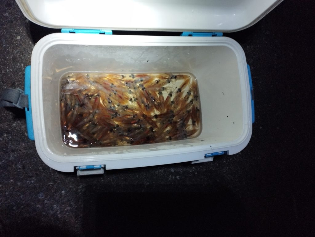 3時までに150匹。これで今年PCしながら噛じってる干し物確保です。