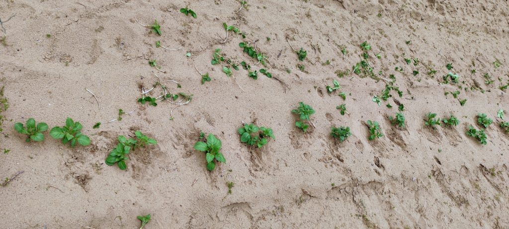 たぶん17日に植えた大根の種、発芽した。今が一番うれしい時かも。