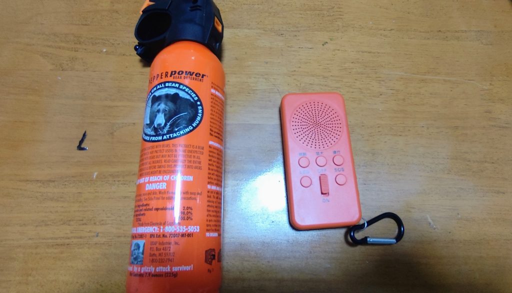 弟と軽トラ乗って、山超え藪超え。。谷に下りる。熊スプレーに警報装置も準備して。