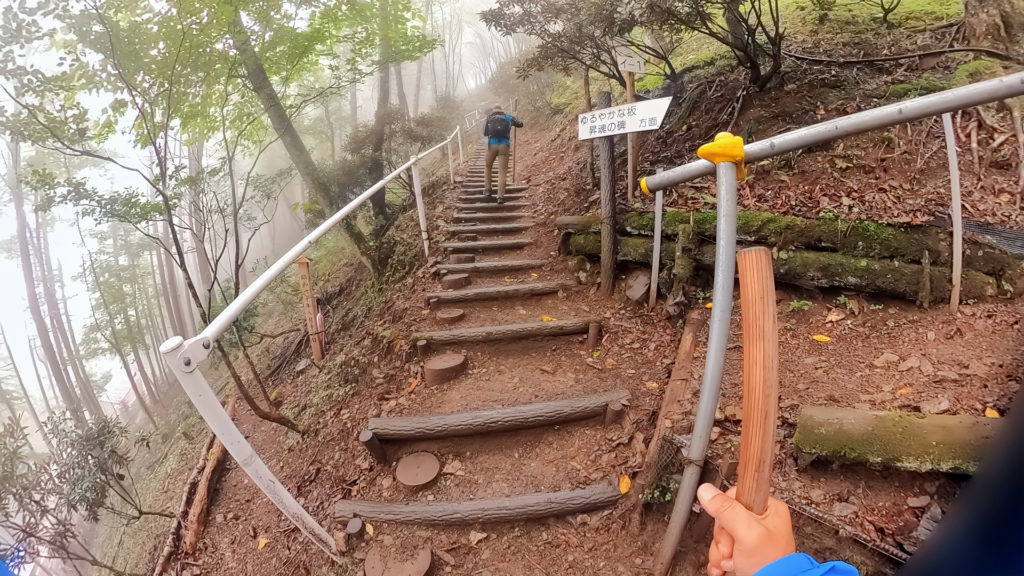 そこから鎮魂碑までが想像以上に大変。良く整備された急勾配の階段を延々のぼる上の方へ行くと階段の折返し部にお墓が並ぶ。尾根そのものが墓地になってる感じがした。