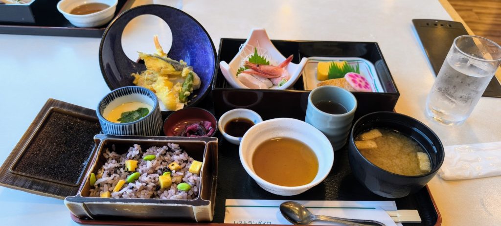 50年ほど前、羽咋の田舎から婆ちゃんに連れられて汽車で金沢の中心部にある大和8階のレストランでお子様ランチ食べて、ゲームしたの憶えてる。子供の頃のように流石にお子様ランチは頼めないので兼六御膳を注文した。窓からの景色も綺麗で美味しかった。