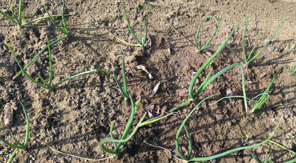 久しぶりに畑見に行くと玉ねぎの畝に雑草がビッシリ。