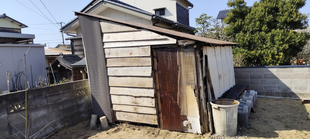 畑の小屋のトタンがボロボロ。残材を当てた。