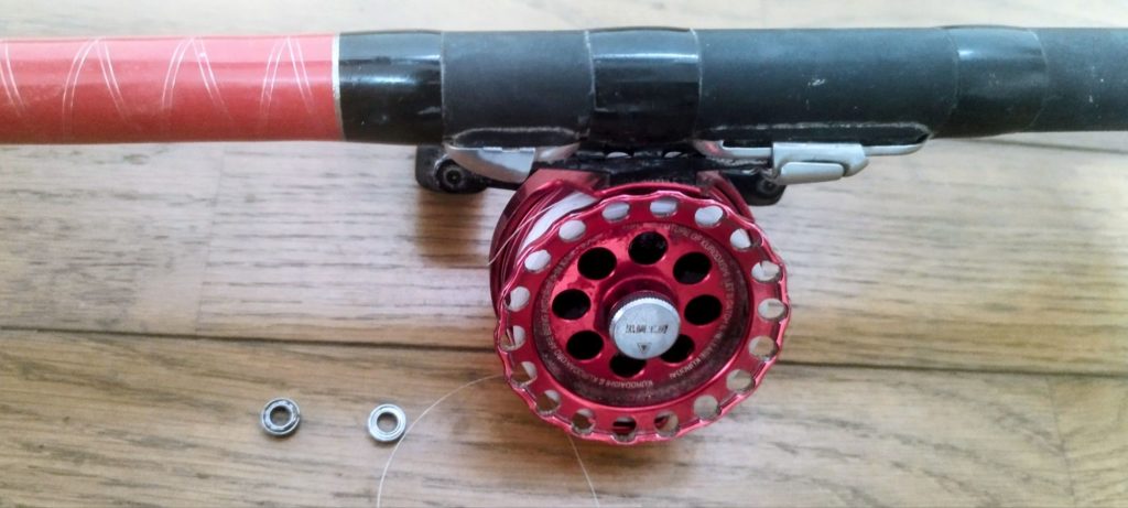 竿のリールのベアリングを交換した。黒鯛工房ではベアリング1個800円ふえーー